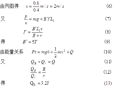 ,通过恒定功率Pm=6W的竖直向上的拉力使棒从静止开始向上运动,其棒向上运动的位移随时间变化的情况如图丙所示,试求磁感应强度