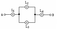 5、选择题  如图所示,电灯L1、L2都标有“220V,100W”;电灯L3、L4都标有“220V,40W”.将A、B两端接入电源,最暗的灯是(  )