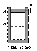 (3)如图所示,一直立的汽缸用一质量为m的活塞封闭一定量的理想气体,活塞横截面积为S,汽缸内壁光滑且缸壁是导热的,开始活塞被固定,打开固定螺栓K,活塞下落,经过足够长时间后,活塞停在B点,已知AB=h,大气压强为p0,重力加速度为g.
