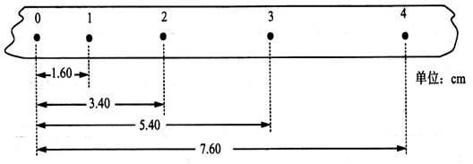 1、实验题  某同学在做《研究匀变速直线运动》的实验中,所用电源频率为50Hz。如图所示,取一段实验纸带,从0点开始每5个点取一个计数点,分别记为1、2、3、4,各计数点到0点的距离已在图中标出。则相邻计数点间的时间间隔为?s,小车到计数点2时的瞬时速度v2=?m/s,根据数据可求得小车的加速度a=?m/s2。(结果保留2位有效数字)