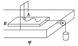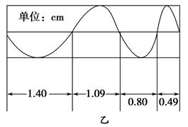 4、填空题 如图甲为测定长木板B在桌面上运动时的加速度的装置.A为沙摆,当沙摆摆动经过平衡位置时开始计时(设为第1次经过平衡位置),当它第30次经过平衡位置时测得所需的时间为29 s.图乙为某次实验在运动的木板上留下的沙子的痕迹,测得数据如图乙所示,则木板的加速度为________m/s2.