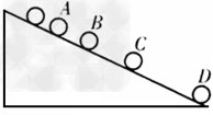 1、计算题 如图所示,有若干相同的小球,从斜面上的某一位置每隔0.1 s无初速度地释放一颗,在连续释放若干钢球后,对准斜面上正在滚动的若干小球拍摄到如图所示的照片,测得AB=15 cm,BC=20 cm。求: