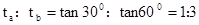 1、计算题 如图所示,两小球a、b从直角三角形斜面的顶端以相同大小的水平速率v0向左、向右水平抛出,分别落在两个斜面上,三角形的两底角分别为30°和60°,则两小球a、b运动时间之比为