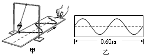 4、选择题 图甲是利用沙摆演示简谐运动图象的装置。当盛沙的漏斗下面的薄木板被水平匀速拉出时,做简谐运动的漏斗漏出的沙在板上形成的曲线显示出沙摆的振动位移随时间的变化关系。已知木板被水平拉动的速度为0.20m/s,图乙所示的一段木板的长度为0.60m,则这次实验沙摆的摆长为(取g =π2)