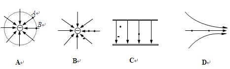 5、选择题 如图所示各图中,A、B两点电场强度相同的是