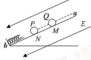 4、选择题 如图所示,倾角为的光滑斜面下端固定一绝缘轻弹簧,M点固定一个质量为m、带电量为-q的小球Q。整个装置处在场强大小为E、方向沿斜面向下的匀强电场中。现把一个带电量为+q的小球P从N点由静止释放,释放后P沿着斜面向下运动。N点与弹簧的上端和M的距离均为s0。P、Q以及弹簧的轴线ab与斜面平行。两小球均可视为质点和点电荷,弹簧的劲度系数为k0,静电力常量为k。则( )