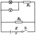 2、简答题 如图所示,R为电阻箱,为理想电压表.当电阻箱读数为R1=2Ω时,电压表读数为U1=4V;当电阻箱读数为R2=5Ω时,电压表读数为U2=5V.求: