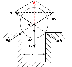 4、计算题 如图所示,一圆桶形锅炉横卧于耐火材料砌成的底座上,已知锅炉半径R=lm,底座间L=1.6m,锅炉和内盛水的总重为2.4×104N,不计摩擦,求锅炉对底座的其中一侧的压力大小.