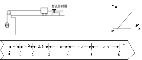 1、实验题 在验证牛顿第二定律的实验中,采用如图所示的实验装置。在探究加速度a与所受外力F的关系实验过程,某小组得到了如图所示的纸带(两计数点间还有两个点没有画出),已知打点计时器采用的是频率为50HZ的交流电,则两计数点间的时间间隔为(?) s,根据纸带可求出小车的加速度大小为(?)m/s2(此空保留两位有效数字)。由于他们操作不当得到的a-F关系图象如图所示,其原因是:?( )(只答一种情况即可)