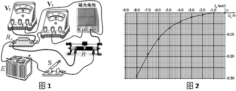 ②用遮光罩罩住硅光电池,闭合开关S,调节变阻器R,读出电压表V1、V2的示数U1、U2。