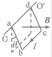 5、选择题 如图,在磁感应强度为B的匀强磁场中,面积为S的矩形刚性导线框abcd可绕过ad边的固定轴OO′转动,磁场方向与线框平面垂直。在线框中通以电流强度为I的稳恒电流,并使线框与竖直平面成角,此时bc边受到相对OO′轴的安培力力矩大小为