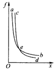 如图所示,设有一分子位于图中的坐标原点O处不动,另一分子可位于x轴上不同位置处,图中纵坐标表示这两个分子间分子力的大小,两条曲线分别表示斥力和引力的大小随两分子间距离变化的关系,e为两曲线的交点,则( ? )
