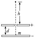 5、填空题 如图所示,水平放置的两平行金属板间距为d,电压大小为U,上板中央有孔,在孔正下方的下板表面上有一个质量为m、电量为-q的小颗粒,将小颗粒由静止释放,它将从静止被加速,然后冲出小孔,则它能上升的最大高度h= ______。