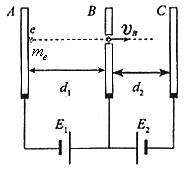 3、简答题 在金属板AB间,BC间分别接有电源E1和E2,已知金属板AB间的距离为
