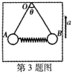 2、选择题 如图所示,A、B两球完全相同,质量均为,用两根等长的细线悬挂在升降机内天花板的O点,两球之间连着一根劲度系数为七的轻质弹簧,当升降机以加速度