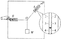 3、填空题 (1)某同学用如图的实验装置验证“力的平行四边形定则”.弹簧测力计A挂于固定点P,下端用细线挂一重物M.弹簧测力计B的一端用细线系于O点,手持另一端水平向左拉,使结点O静止在某位置,分别读出弹簧测力计A和B的示数,并在贴于竖直木板的白纸记录O点位置和拉线方向.