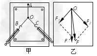 4、实验题 某同学做“验证力的平行四边形定则”实验的情况如图甲所示,其中A为固定橡皮筋的图钉,O为橡皮筋与细绳的结点,OB和OC为细绳。图乙是在白纸上根据实验结果画出的图。