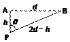 P与AB的距离为 h/=dcos30°=?(2分)