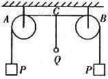 3、简答题 如图所示,细绳绕过两个定滑轮A和B,在两端各挂一个重为P的物体,现在A、B的中点C处挂一个重为Q的小球,Q<2P,求小球可能下降的最大距离h。已知AB的长为2L,不计滑轮和绳之间的摩擦力及绳的质量。?