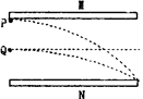 4、选择题 带有等量异种电荷的平行金属板M、N水平放置,两个电荷P和Q以相同的速率分别从极板M边缘和两板中间沿水平方向进入板问电场,恰好从极板N边缘射出电场,如图所示。若不考虑电荷的重力和它们之间的相互作用,下列说法正确的是