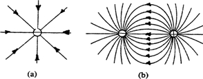3、简答题 在下列图(a)(b)中,根据其中电场线的分布,请在○中标出电荷的正、负(用符号+、-表示).