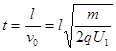 ,则OC= =1m,粒子在垂直电场方向做匀速直线运动,则