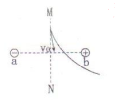 4、选择题 如右图所示,a、b带等量异种电荷,MN为ab连线的中垂线,现有一带电粒子从M点以一定初速度v2射入,开始时一段轨迹如图中实线,不考虑粒子的重力,则在飞越该电场的整个过程中,下列说法正确的是?(?)