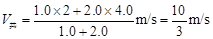 根据动量守恒定律得: mv1+Mv2="(m+M)" V共?