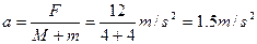 2s末,m的速度v1=a1t="6m/s" ,M的速度v2=a2t=4m/s