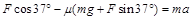 ⑵用大小为30N,与水平方向成37°的力斜向下推此物体,使物体从A处由静止开始运动到达B处,求物体的运动时间。