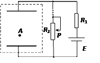 5、简答题 在如图所示的装置中,电源电动势为E,内阻不计,定值电阻为R1,滑动变阻器总阻值为R2,置于真空中的平行板电容器水平放置,极板间距为d。处在电容器中的油滴A恰好静止不动,此时滑动变阻器的滑片P位于中点位置。