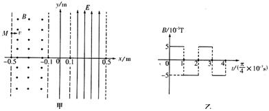 2、简答题 如图甲所示,在直角坐标系y轴右侧虚线区域内,分布着场强