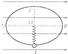 3、选择题 如图所示,竖直平面内有一固定的光滑椭圆大环,其长轴长BD=4L、短轴长AC=2L.劲度系数为k的轻弹簧上端固定在大环的中心O,下端连接一个质量为m、电荷量为q、可视为质点的小环,小环刚好套在大环上且与大环及弹簧绝缘,整个装置处在水平向右的匀强电场中.将小环从A点由静止释放,小环运动到B点时速度恰好为0.已知小环在A、B两点时弹簧的弹力大小相等,则( )