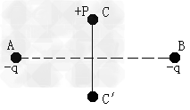 1、选择题 一个带正电荷的质点P放在两个等量负电荷A、B的电场中,P恰好在AB连线的垂直平分线的C点处,现将P在C点由静止释放,设P只受电场力作用,则?