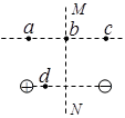 4、选择题 如图所示,在两等量异种点电荷的电场中,为两电荷连线的中垂线,