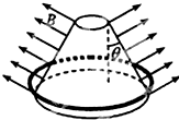 1、选择题 如图所示,空间存在着与圆台母线垂直向外的磁场,各处的磁感应强度大小均为B,圆台母线与竖直方向的夹角为θ.一个质量为m、半径为r的匀质金属环位于圆台底部.环中通以恒定的电流I后圆环由静止向上运动,经过时间t后撤去该恒定电流并保持圆环闭合,圆环上升的最大高度为H.已知重力加速度为g,磁场的范围足够大.在圆环向上运动的过程中,下列说法正确的是( )