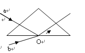 4、选择题 两束单色光a和b沿如图所示的方向射向等腰玻璃三棱镜的同一点O,巳知a光在底边界面处发生全反射,两束光沿相同方向射出,则