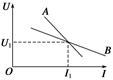 .A图线的斜率绝对值大于B图线斜率的绝对值,所以A的内阻大于B的内阻,即 .当电流都是