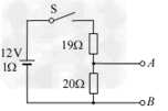 2、填空题  如图所示的电路中,电源的电动势为12V,内阻为1Ω,两定值电阻的阻值分别为19Ω和20Ω。开关S闭合后,电路中的电流为________A,A、B间的电压为________V。