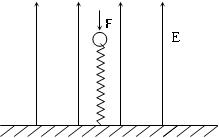 3、选择题 如图所示,绝缘的轻质弹簧竖直立于水平地面上,上面放一质量为m的带正电小球(小球与弹簧不拴接),整个系统处在方向竖直向上的匀强电场中。开始时,整个系统处于静止状态,现施加一外力F,将小球向下压至某一位置,然后撤去外力,使小球从静止开始向上运动。设小球从静止开始向上运动到离开弹簧的过程中,电场力对小球所做的功为W1,小球克服重力所做的功为W2,小球离开弹簧时的速度为V。不计空气阻力,则在上述过程中
