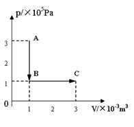 ②该气体从状态A到状态C的过程中是吸热,还是放热?传递的热量是多少?