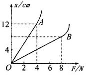 2、实验题 为了探究弹簧弹力F和弹簧伸长量x的关系,某同学选了A、B两根规格不同的弹簧进行测试,根据测得的数据绘出如图所示的图像,从图像上看,该同学没能完全按实验要求做,使图像上端成为曲线,图像上端成为曲线的原因是??,弹簧B的劲度系数为?.若要制作一个精确度较高的弹簧测力计,应选弹簧?(选填“A”或“B”) .