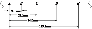 1、实验题 如图是某同学用打点计时器研究小车做匀变速直线运动时打出的一条纸带,A、B、C、D、E为该同学在纸带上所选的计数点,相邻计数点间的时间间隔为0.1s。由图可知,打点计时器打下D点时小车的瞬时速度为?m/s,小车的加速度为??m/s2(结果均保留两位有效数字)。