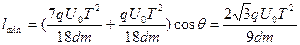 即所有的粒子平行射出电场,如下图所示,要使靶长度最小,需要将靶垂直于粒子出射方向放置……………(1分)