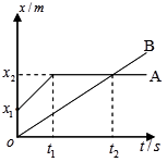 1、选择题 如图是在同一条直线上运动的A、B两质点的位移图象,由图可知(?)
