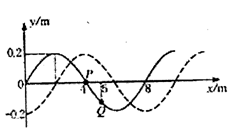 5、选择题 如图所示为一列沿x轴传播的简谐横波,实线为t=0时刻的波形图,虚线为t=0.6s时的波形图,已知波的周期T>0.6s,则?(?)