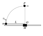 4、计算题 如图所示,质量M=2 kg的滑块套在光滑的水平轨道上,质量m=1 kg的小球通过长L=0.5 m的轻质细杆与滑块上的光滑轴O连接,小球和轻杆可在竖直平面内绕O轴自由转动,开始轻杆处于水平状态,现给小球一个竖直向上的初速度v0=4 m/s,g取10 m/s2。