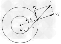 (2)v可分解为切向速度v1和法向速度v2(如图),绳被拉紧后v2=0,小球以速度v1做匀速圆周运动,半径r=a+h