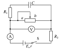 3、选择题 在如图的电路中电源电动势为E,内电阻为r.闭合开关S,待电流达到稳定后,电流表示数为I,电压表示数为U,电容器C所带电荷量为Q.现将滑动变阻器的滑动触头从图示位置向a端移动一些,待电流达到稳定后,则与移动前相比(? )
