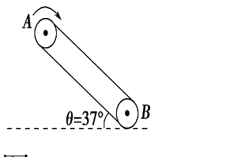 2、计算题 (9分)传送带与水平面夹角为37°,皮带以12 m/s的速率沿顺时针方向转动,如图所示。今在传送带上端A处无初速度地放上一个质量为m的小物块,它与传送带间的动摩擦因数为0.75,若传送带A到B的长度为24 m,g取10 m/s2,则小物块从A运动到B的时间为多少?